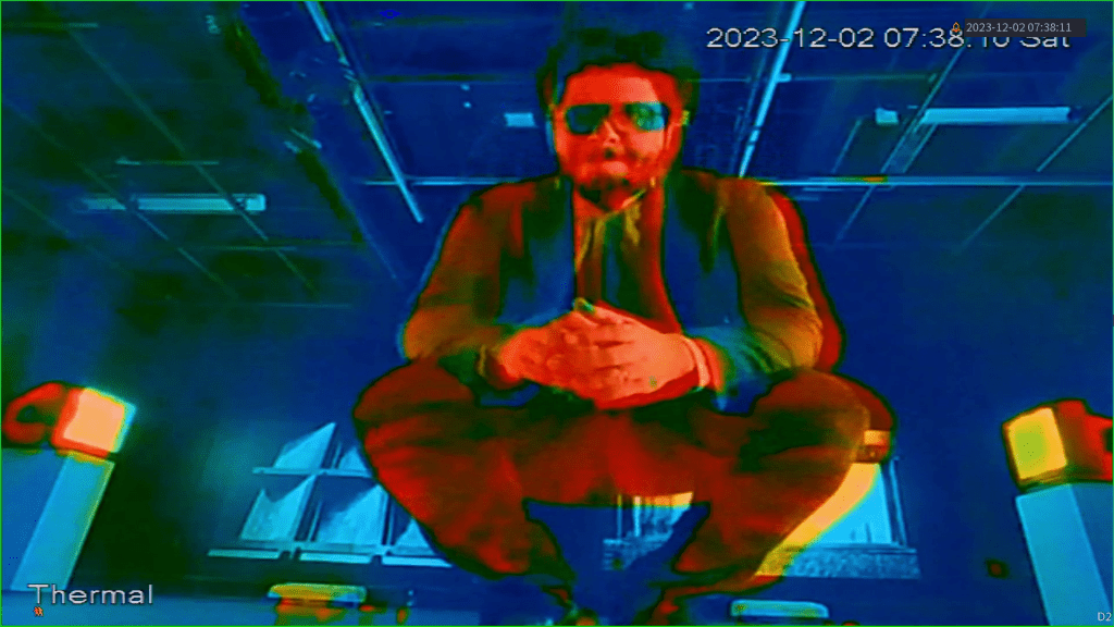 – 1 Thermal Camera with 2 HDMI OUTPUTS or 2 VGA OUTS (or a mix of both) (to be connected simultaneously to Projectors #3 & #4) (a security thermal camera may need first to be connected at a NVR [Network Video Recorder] for providing the HDMI/VGA outputs)